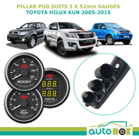3 Gauge Pillar Pod for Toyota Hilux 2005-15 KUN Boost Exhaust Dual Volt Gauge