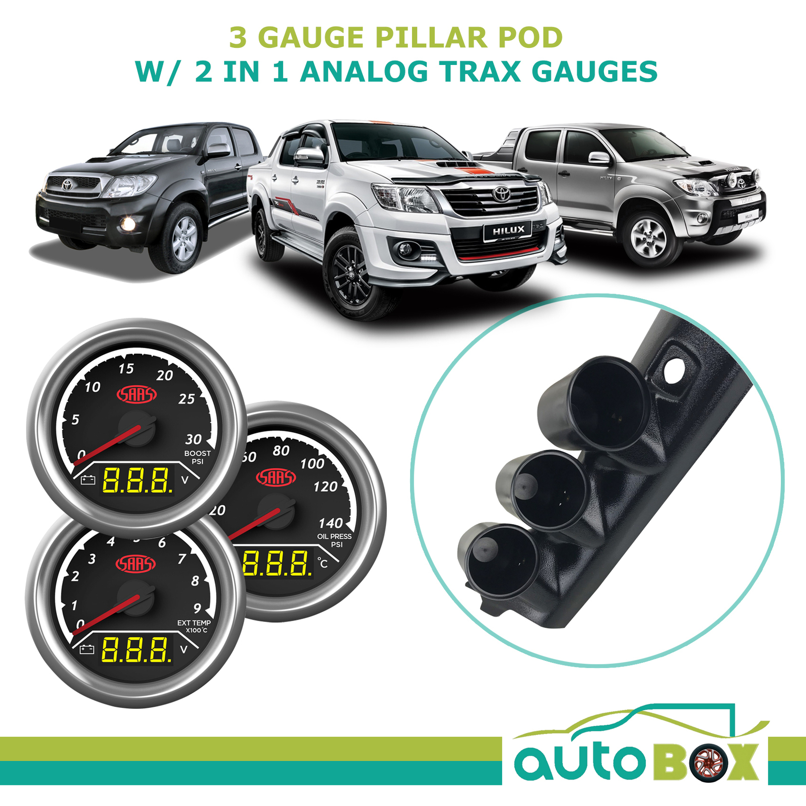 SAAS 3 Gauge Pillar Pod with 2 in 1 Analog Digital Diesel Boost & Volt, Exhaust Temp & Volts, and Oil Pressure & Water Temperature