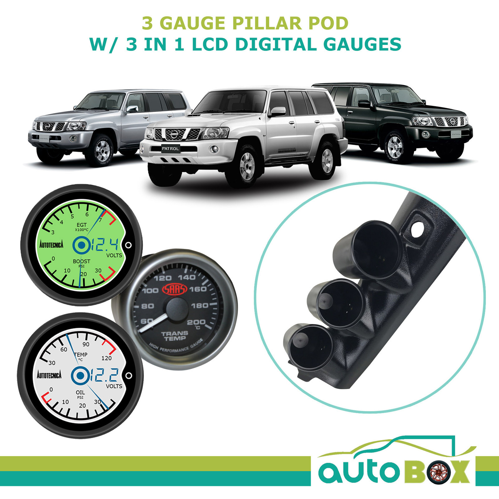 - 1x SAAS 3 Gauge Pillar Pod for Nissan GU Patrol 1997-2015
