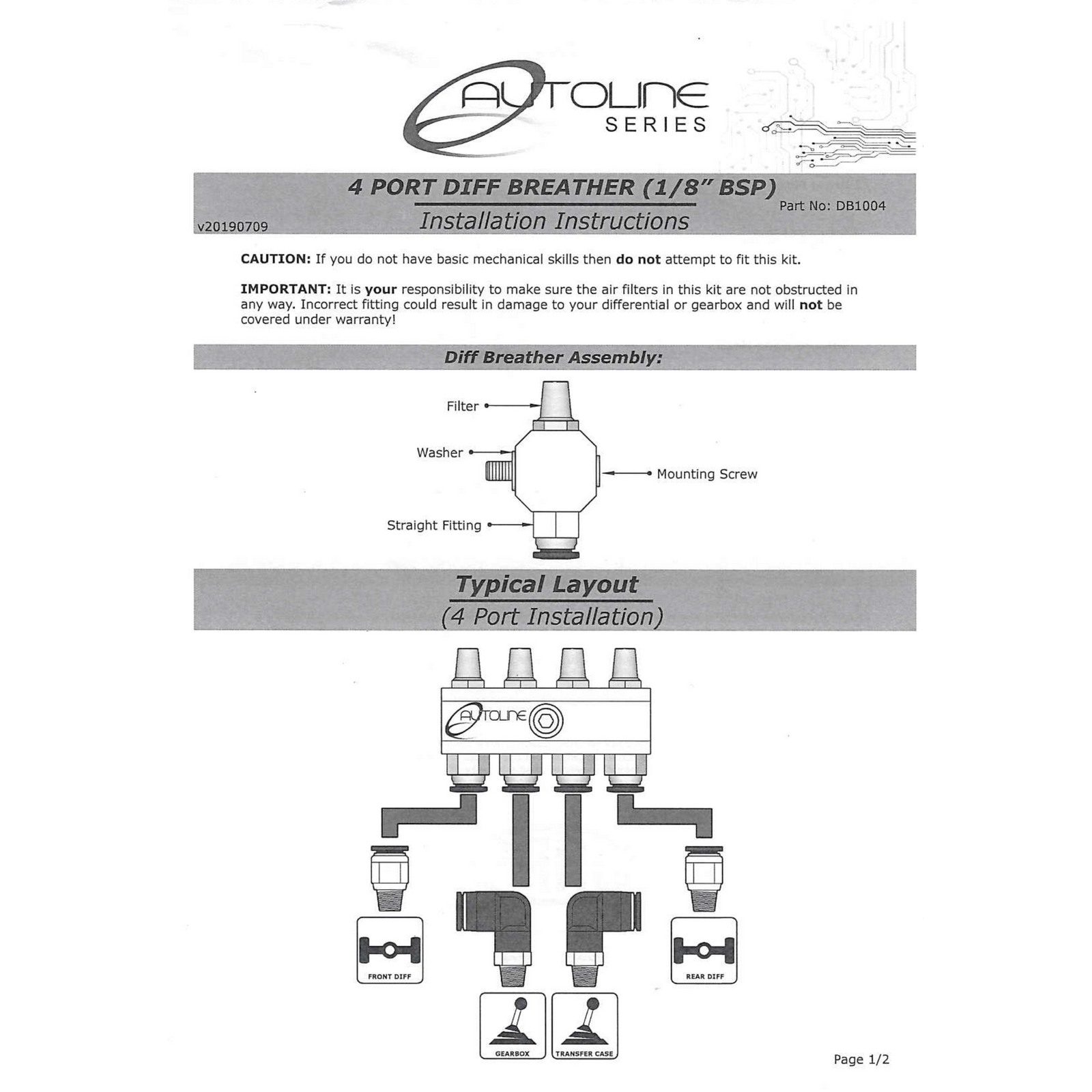 - 1x SAAS Autoline 4X4 Differential Breather Kit Four Port