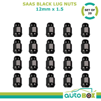Black Wheel Tyre Lug Nuts Set of 20 12mm x 1.5 Commodore VN VP VR VS VT VY VZ