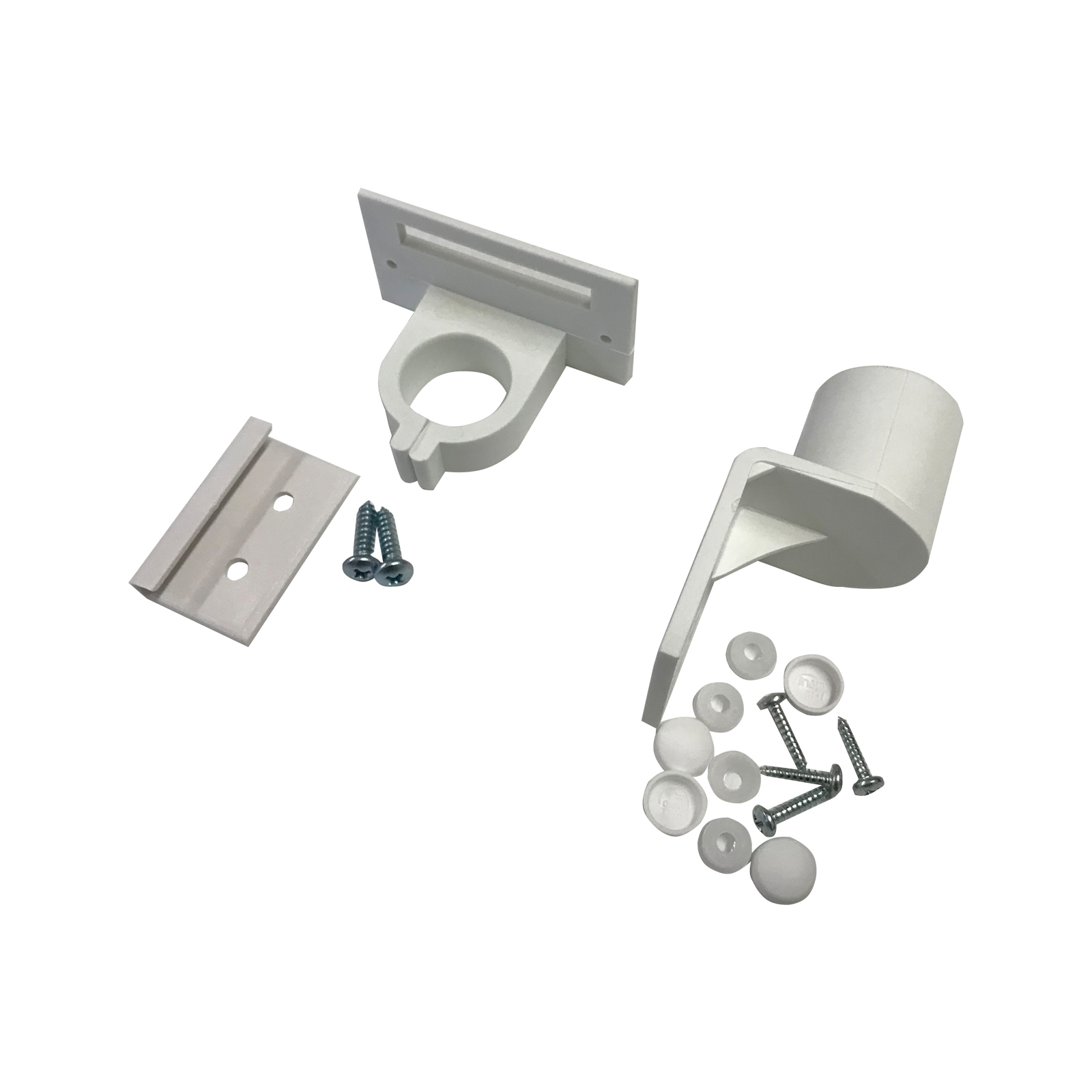 - Part B: 1 x 90-degree bracket with tube coupling with 4 x 15mm zinc plated screws and snap caps