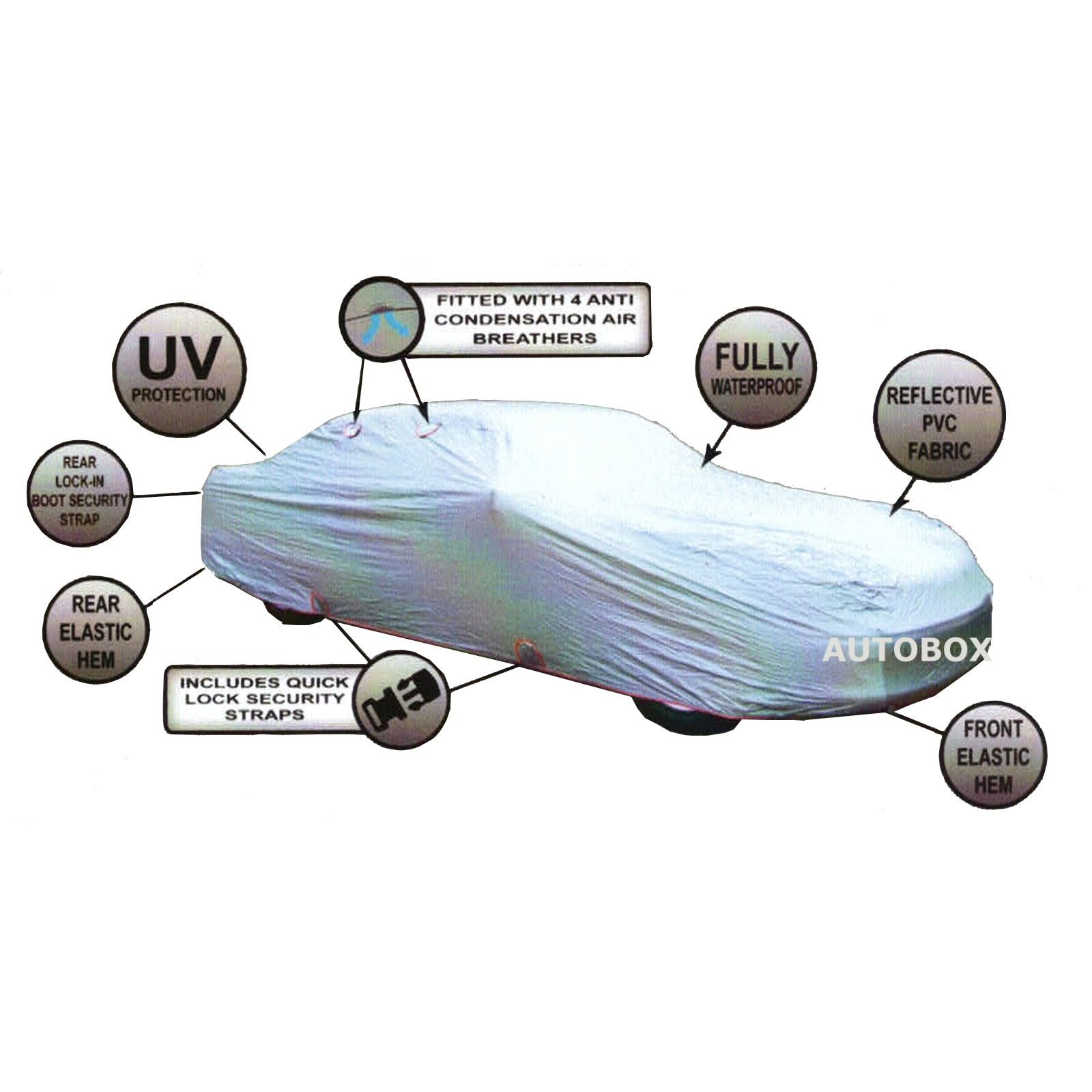 A high-quality top deck car cover that is made from heavyweight material and lined with a soft non-scratching fleece fabric. This cover offers superior protection for your vehicles paintwork. It is designed to protect your car from dust, rain, snow, tree sap and harmful UV rays. The Stormguard cover the range, all feature electro welded seams to ensure it is completely waterproof as well as air breathers which air out condensation. They are also fitted with an elastic bottom hem and two security straps. There is even a storage bag for when your cover is not in use. You will need to know your vehicle's overall length to know what size cover you need. This info can often be found in your owners manual.