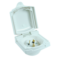Power Inlets, 15A, Weatherproof lid, WHITE. Used to bring 240V power into the RV, Caravan, Camper Trailer or Motorhome. It can also be used on temporary buildings.