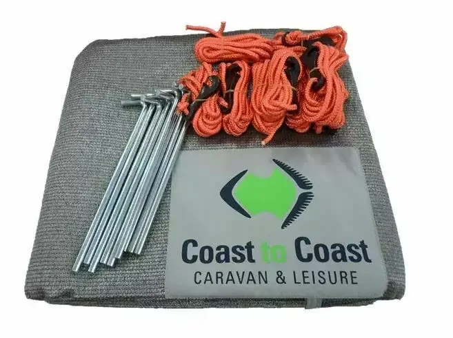 Coast to Coast now has a NEW range of Camper Privacy Sunscreens, these are perfect for shading the kitchen area in most campers as well as providing privacy. Coast's range of sunscreens has been redesigned with the end result being a stronger and more functional sunscreen. The front and side sunscreens now feature an improved spline that won't kink over time. There are also newly added reinforcing triangles (with D-rings) that enable the sunscreen to be secured to awning legs. They are still quick and easy to fit. Once you have taken it out of the packaging, shake it out like a blanket and grab the end without the eyelets. Simply thread it through the track on your awning lead bar.