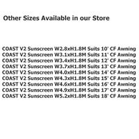 Coasts range of sunscreens has been redesigned with the end result being a stronger and more functional sunscreen. The front and side sunscreens now feature an improved spline that will not kink over time. There are also newly added reinforcing triangles (with D-rings) that enable the sunscreen to be secured to awning legs. They are still quick and easy to fit.