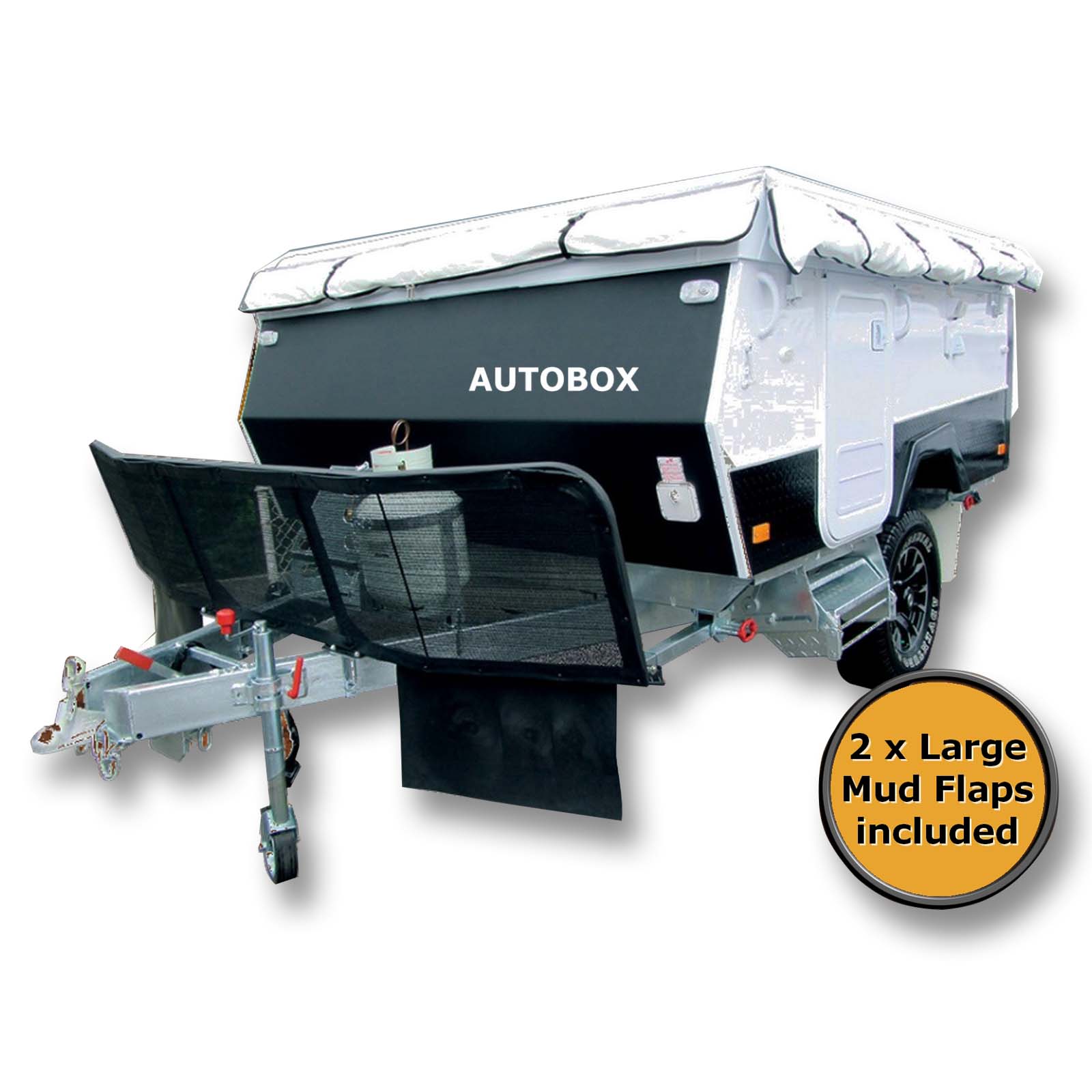 Made from the extra tough ripstop mesh (ripstop is a woven material that is resistant to tears or rips) and includes two extra large rubber mud '¦?aps (that are heavy duty) to protect the undercarriage of your caravan or camper trailer.