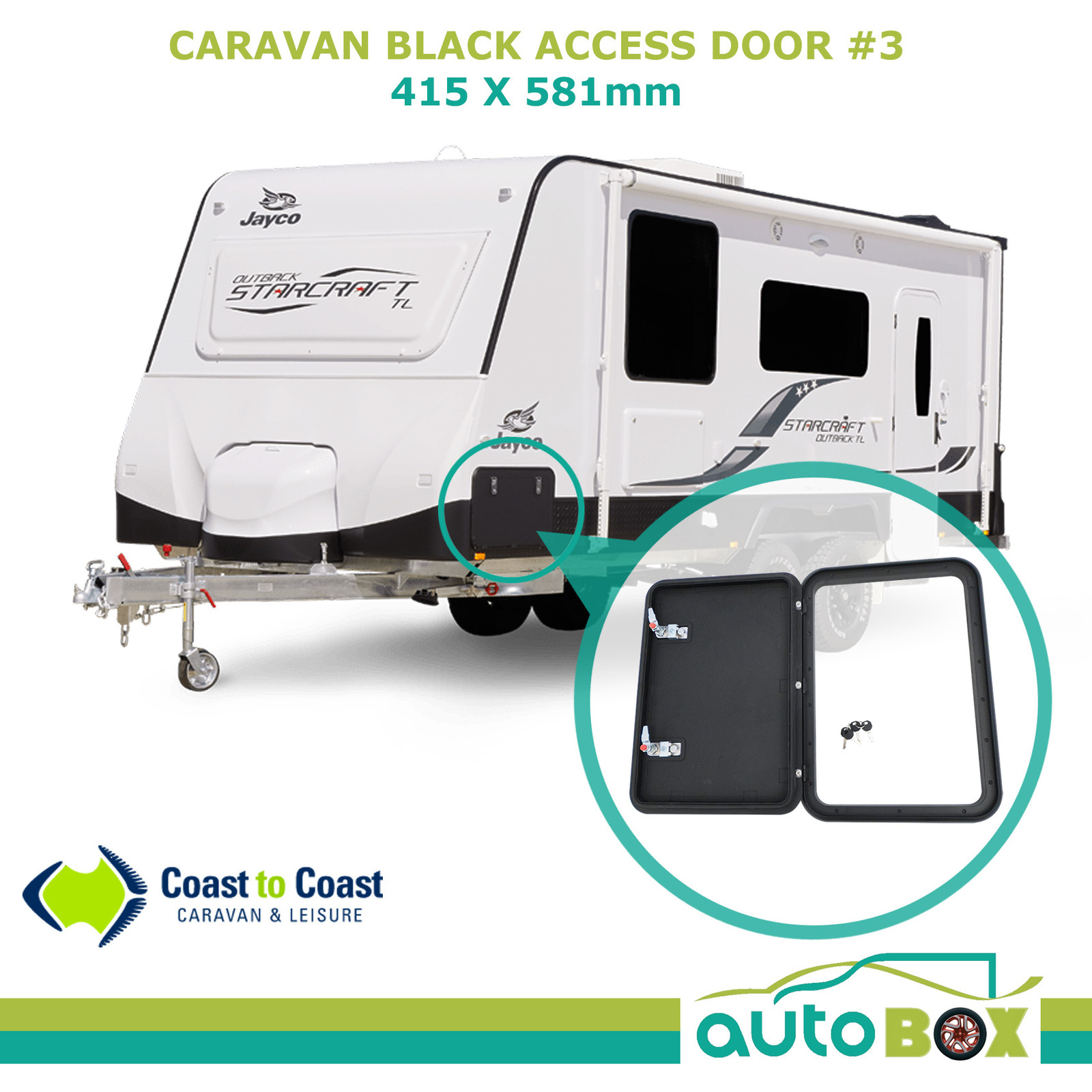 Caravan Access Door #3 415 x 581mm Ext Black RV Camper Trailer Motorhome Jayco