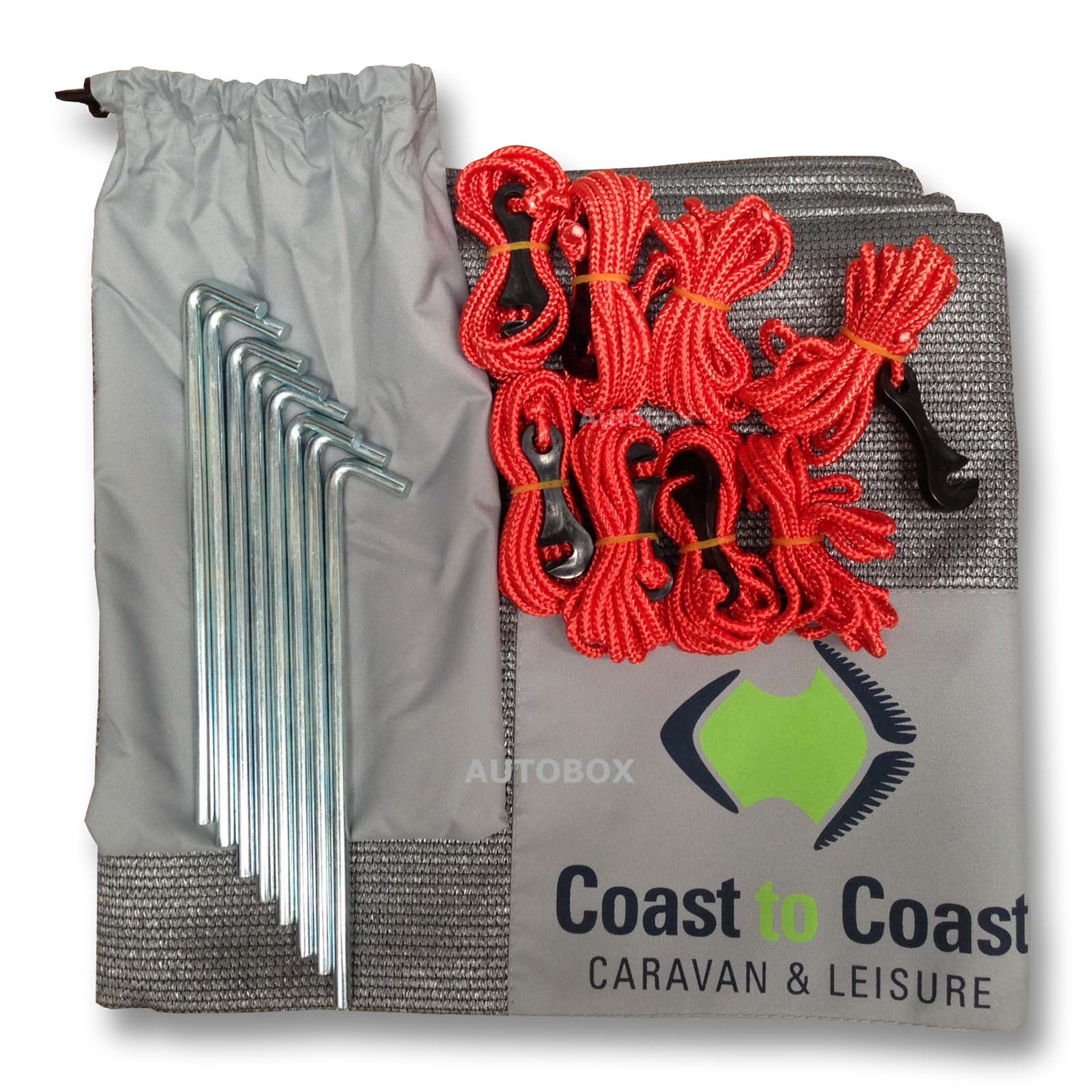 Coasts range of sunscreens has been redesigned with the end result being a stronger and more functional sunscreen. The front and side sunscreens now feature an improved spline that will not kink over time. There are also newly added reinforcing triangles (with Stainless Steel D-rings) that enable the sunscreen to be secured to awning legs. They are still quick and easy to fit.