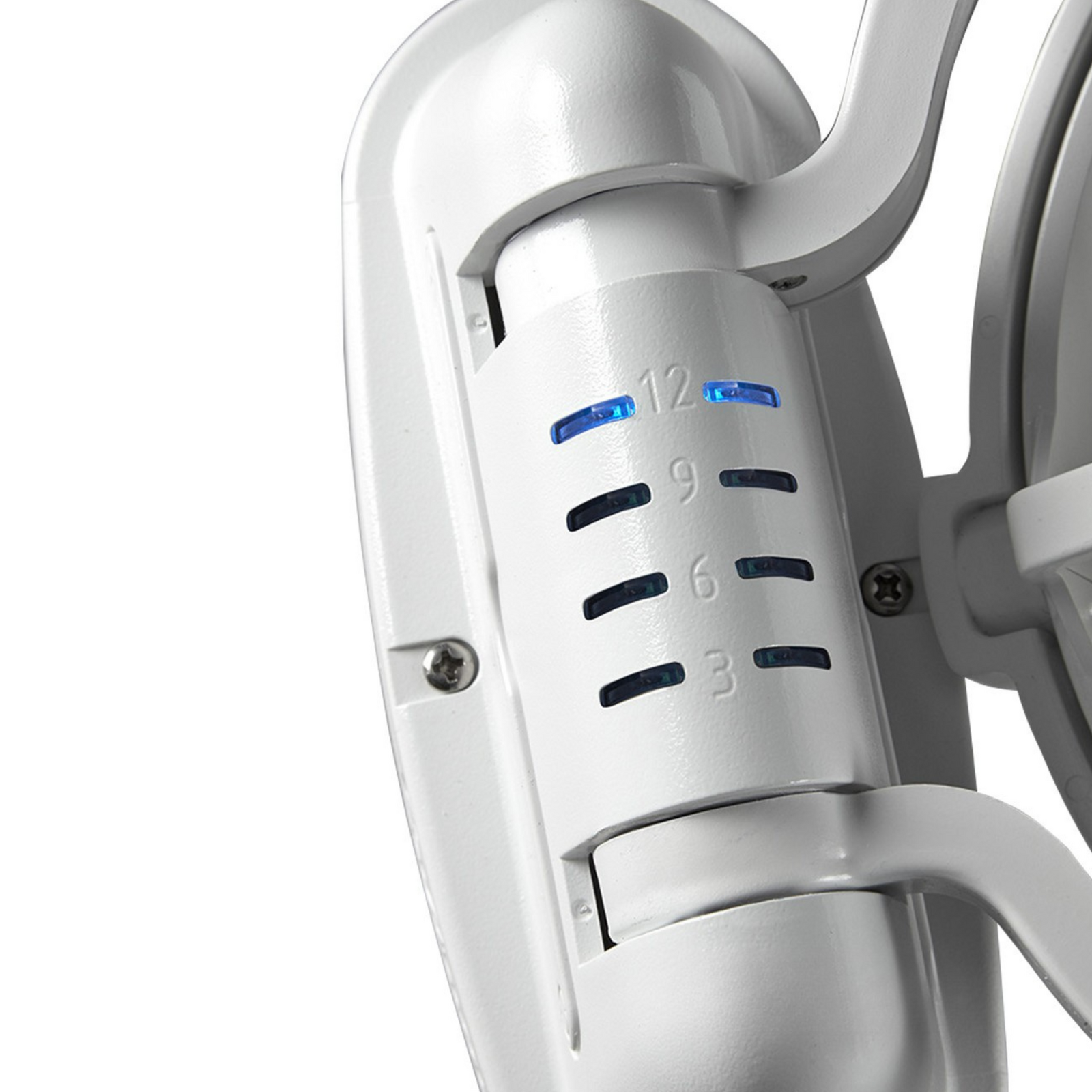- Allows the fan to be folded flat against the wall when not in use
