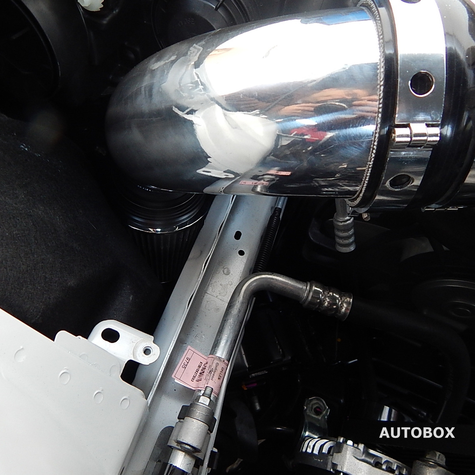 The Filter Pod picks up cold air from behind the headlamp and from behind the front bumper area. Intake temperatures are far cooler as the piping is made of Aluminium, has a greatly reduced heat transfer rate compared to the stock moulded plastic OEM fittings.