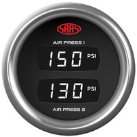 SAAS DUAL DIGITAL GAUGE AIR PRESSURE 0-220psi 52mm DIMMABLE TRAX SUSPENSION
