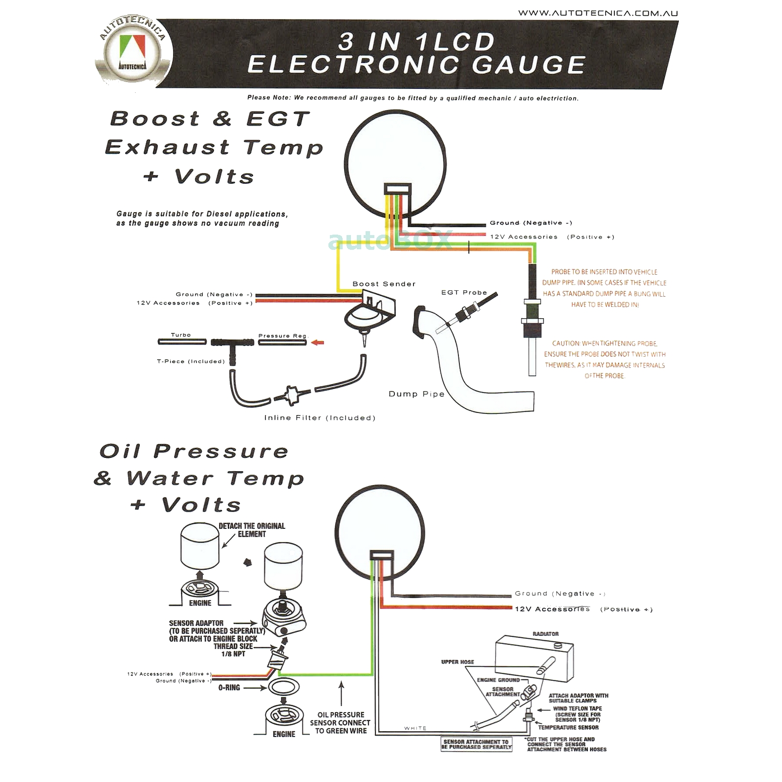 - Exhaust Temperature - 300-800 degrees C Dial Gauge Display