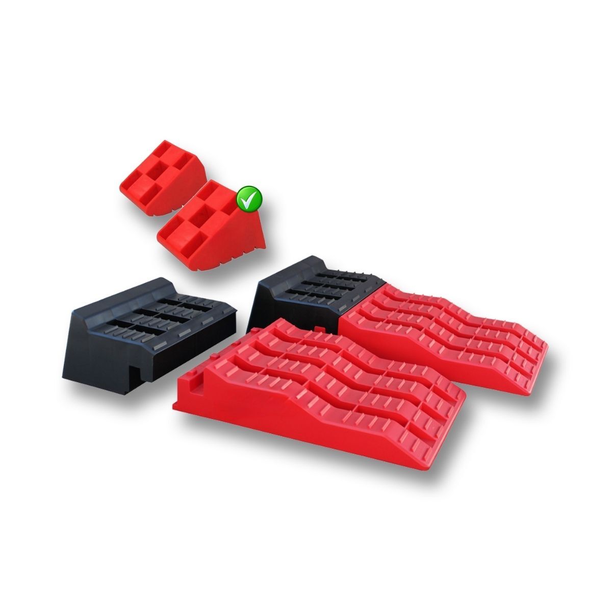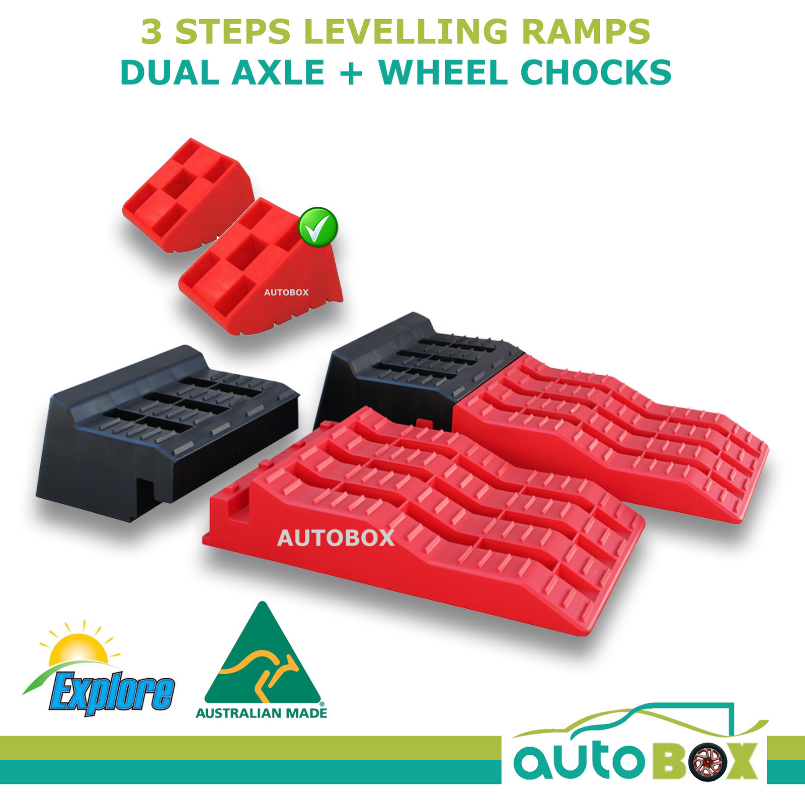 Dual Axle Caravan Wheel Levelling Ramps Chocks - 3 Step Motorhome Black Red