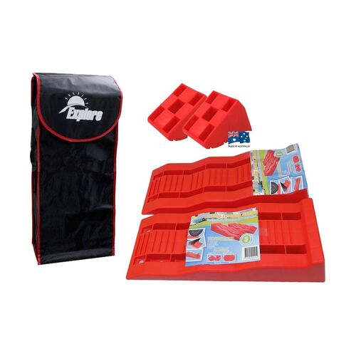 EXPLORE CARAVAN 3 STEP LEVELLING RAMPS plus CHOCKS and STORAGE BAG