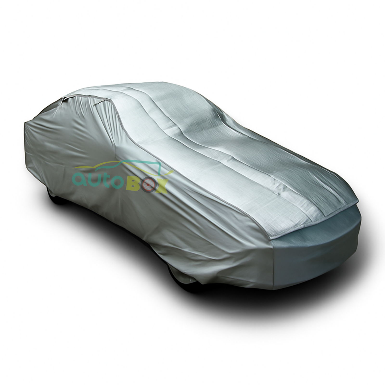 - 6mm EPE protective material with a heat shield on top of a car and PE water proof material on sides.