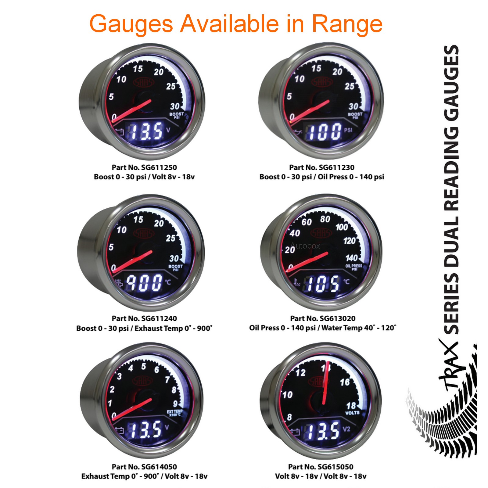 Introducing the latest of Australian designed dual reading analog/digital Trax series gauges. Packed with features and unsurpassed quality built components for the most demanding conditions, Trax gauges are equally At Home in Outback Tracks And Urban Environments.