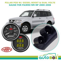 Pajero NM-NP 2000-2006 Pillar Pod w/ Black Diesel Boost & Dual Volts Gauge