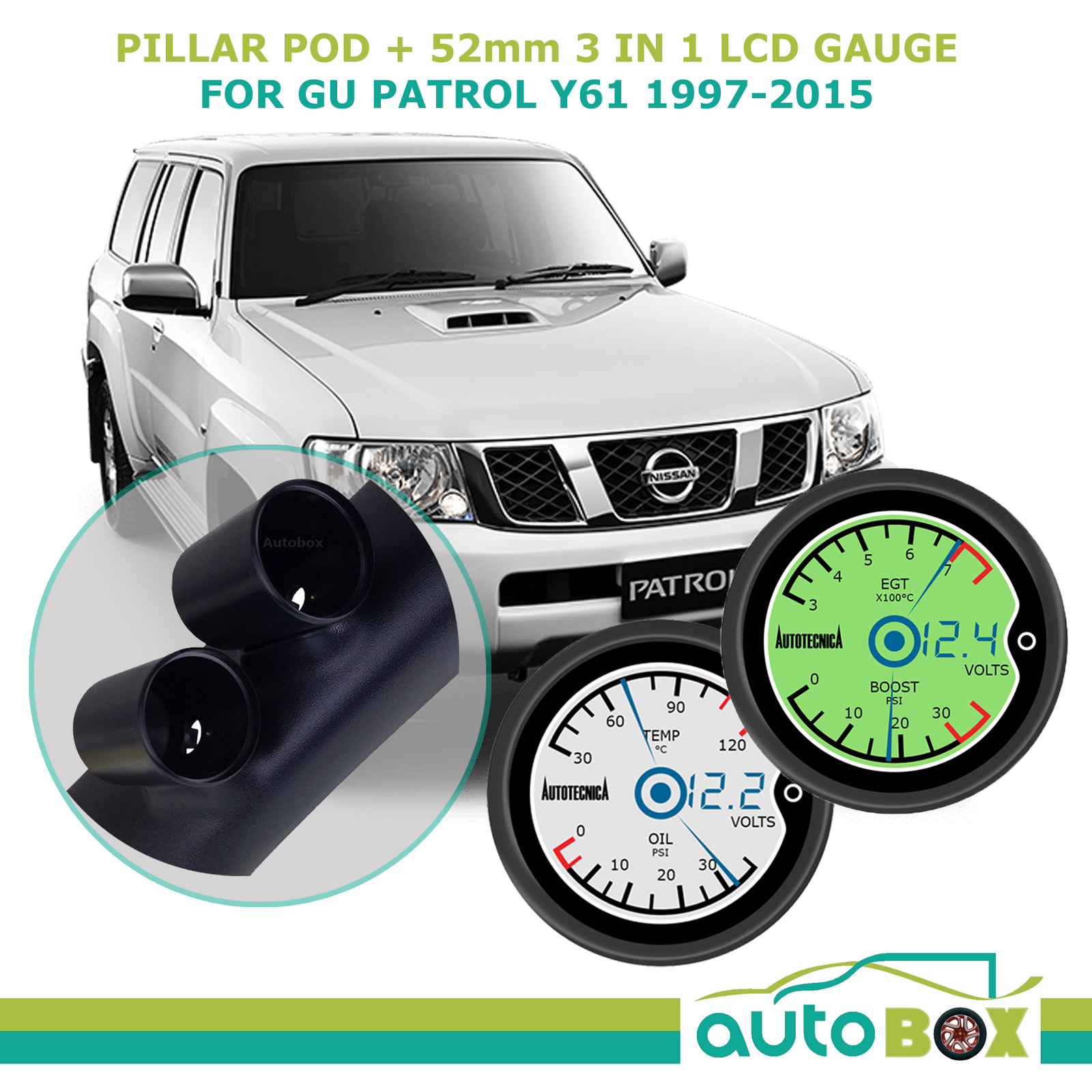 Pillar Pods w/ 3in1 LCD Digital Twin Gauges Suits Nissan GU Patrol Y61 1997-2015