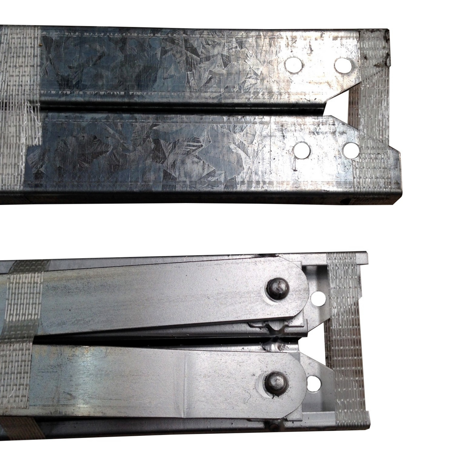 - They are made of a steel track on the bottom & top sections, as well as two flat steel lengths that form an X and pivot in the centre.