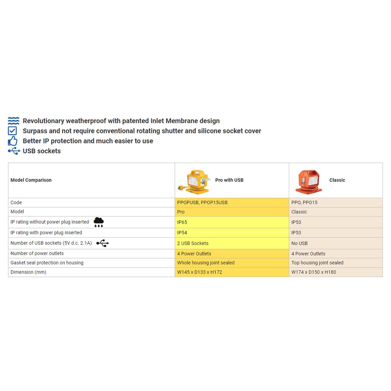 Heavy Duty Portable Power Outlet Pro w/ USB Weatherproof IP65 10A Double Pole