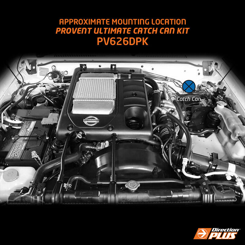 Direction-Plus ProVent Ultimate Catch Can kit PV626DPK protects the diesel engine by substantially reducing the amount of oil entering the engine from blow-by gas in the crankcase ventilation system.