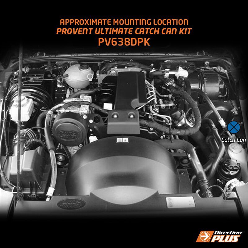 Direction-Plus ProVent Ultimate Catch Can kit PV638DPK protects the diesel engine by substantially reducing the amount of oil entering the engine from blow-by gas in the crankcase ventilation system.