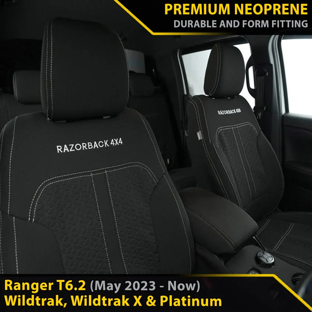 - 1 x Razorback 4x4 Platinum Premium Neoprene 2x Front Row Seat Covers for Ford Next-Gen Ranger T6.2 Wildtrak, Wildtrak X