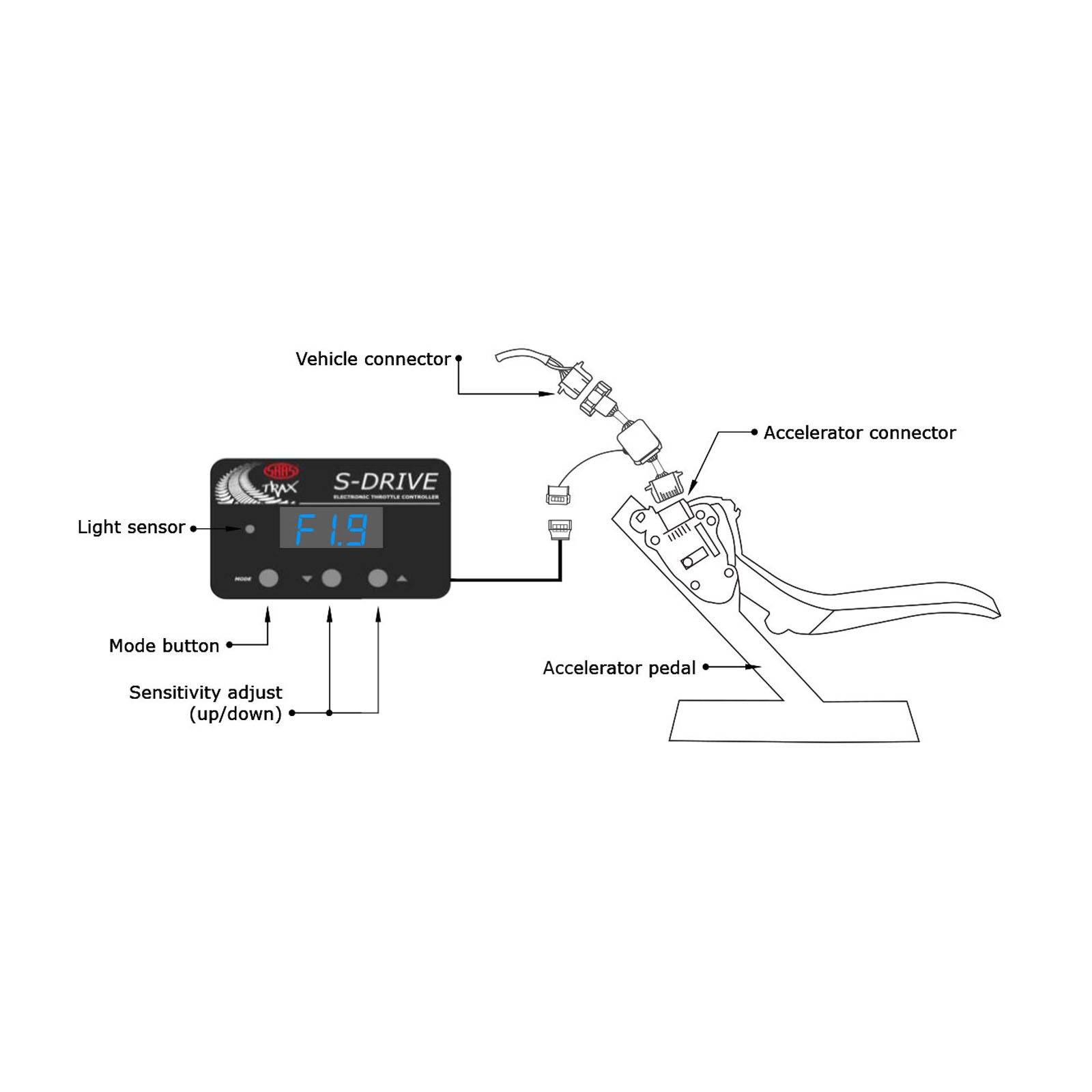 An S-Drive is an electronic throttle controller that works on modern vehicles that use 'fly by wire" throttle technology, in other words, vehicles without an accelerator cable. Most fly by wire vehicles has a delay from the moment the accelerator pedal is pressed, to the time the signal gets to the throttle, otherwise known as "lag".
