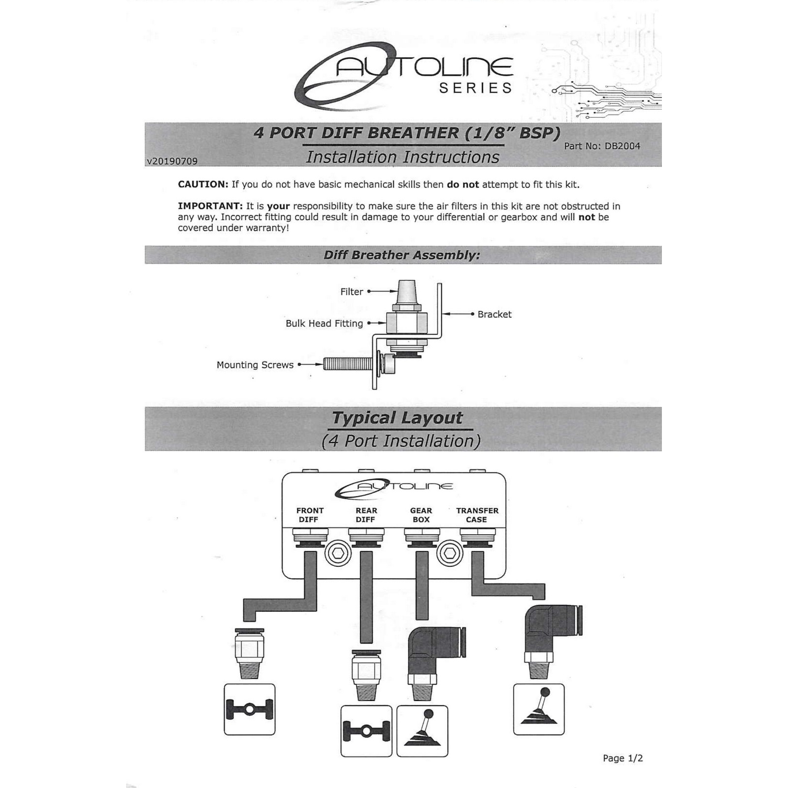 - 1x SAAS Autoline 4X4 Differential Breather Kit Four Port
