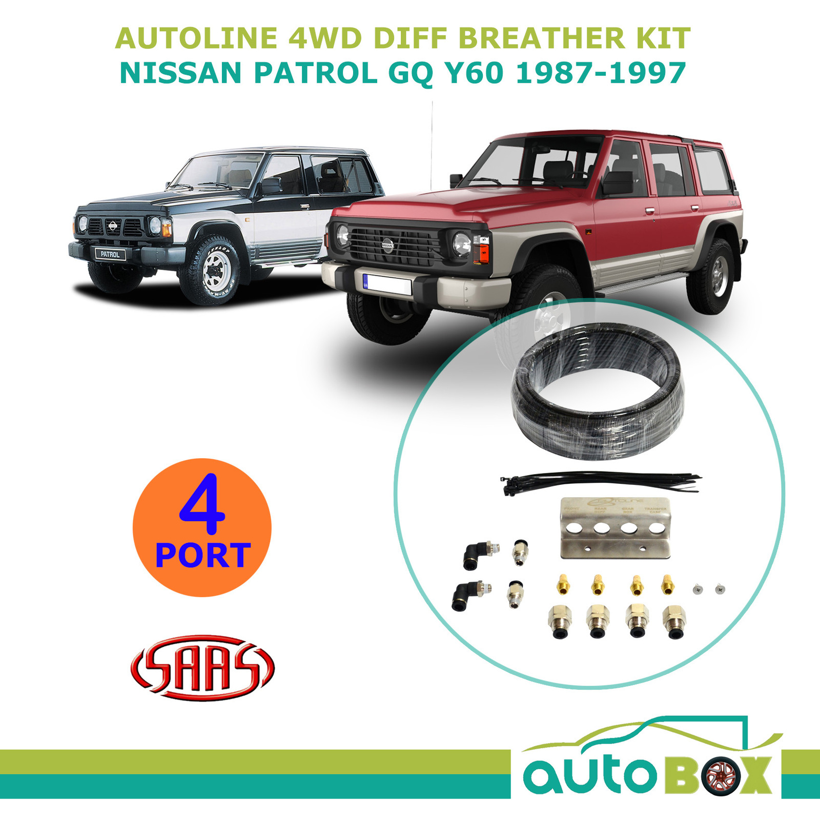 SAAS Autoline 4WD DIFF BREATHER KIT 4 Port Suits Nissan PATROL GQ Y60 1987-1997