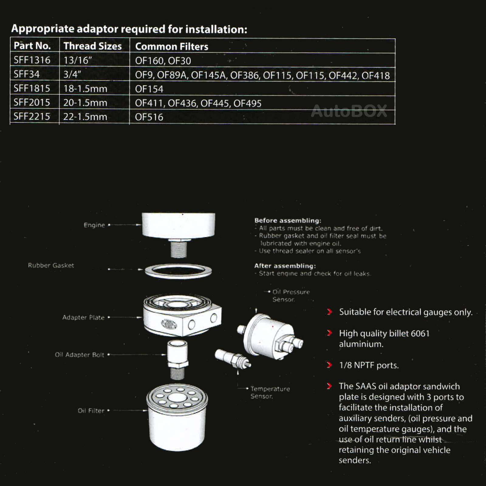- Oil Adaptor Sandwich Plate Designed To Be Used With Oil Pressure and Oil Temperature Gauges
