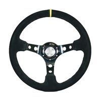 SAAS Suede GT Sports Steering Wheel 350mm Black Alloy Spokes Deep Semi Dish