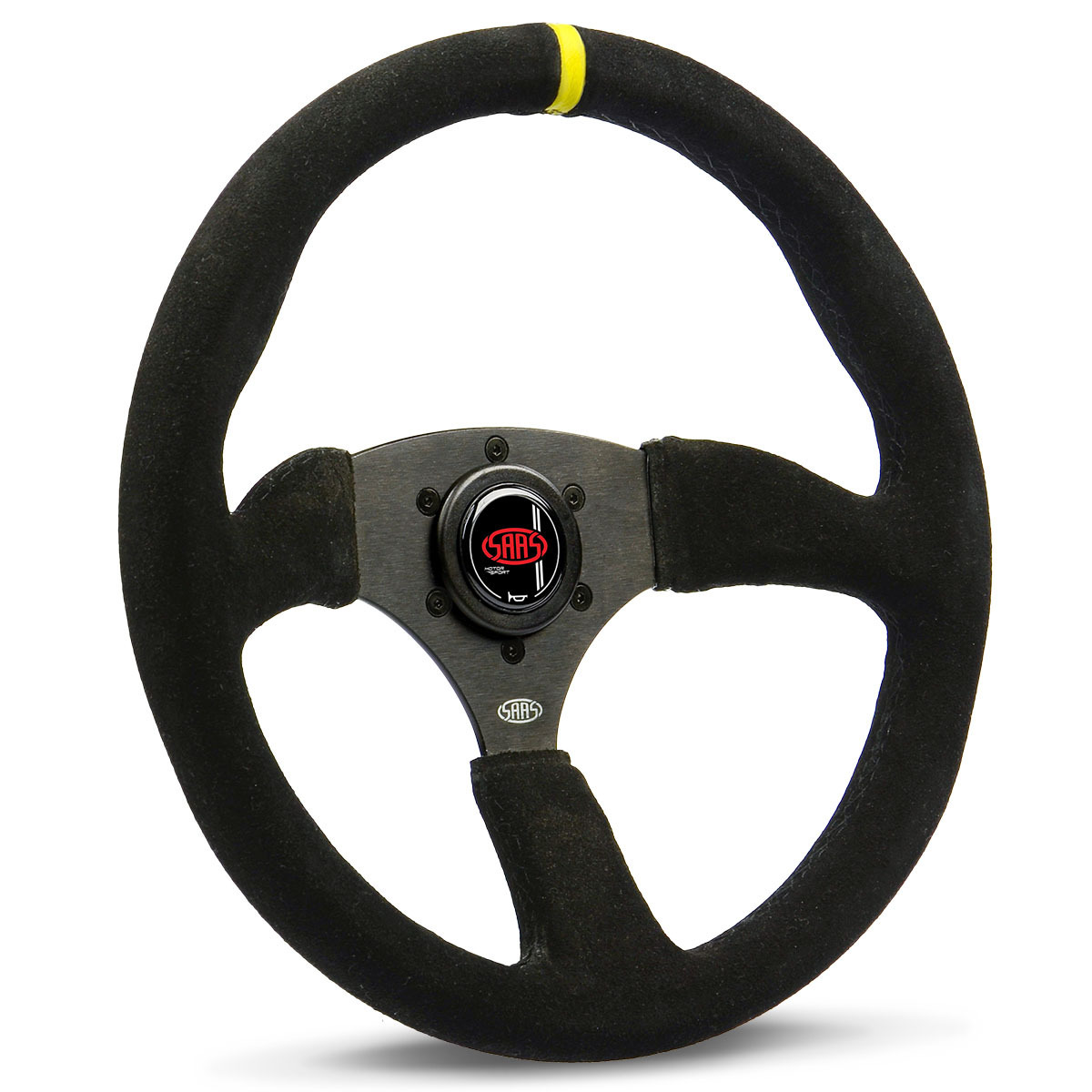 SAAS SUEDE 350mm DEEP DISH STEERING WHEEL 14" ADR TOKYO Black SPOKE INDICATOR