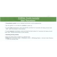 An S-Drive is an electronic throttle controller that works on modern vehicles that use 'fly by wire" throttle technology, in other words, vehicles without an accelerator cable. Most fly by wire vehicles has a delay from the moment the accelerator pedal is pressed, to the time the signal gets to the throttle, otherwise known as "lag".