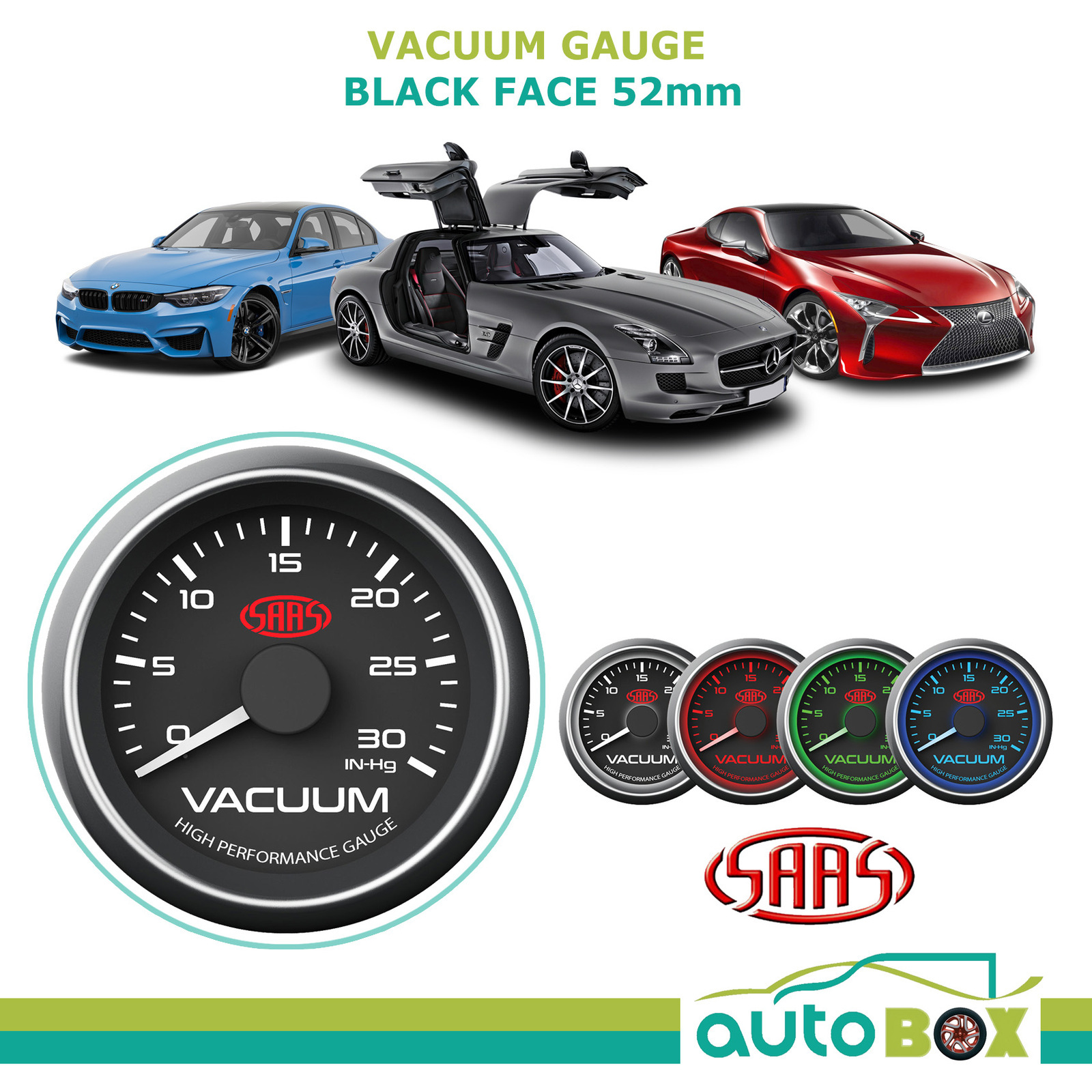 SAAS 30 In-Hg Vacuum Gauge Black Dial Face 52mm Muscle Series