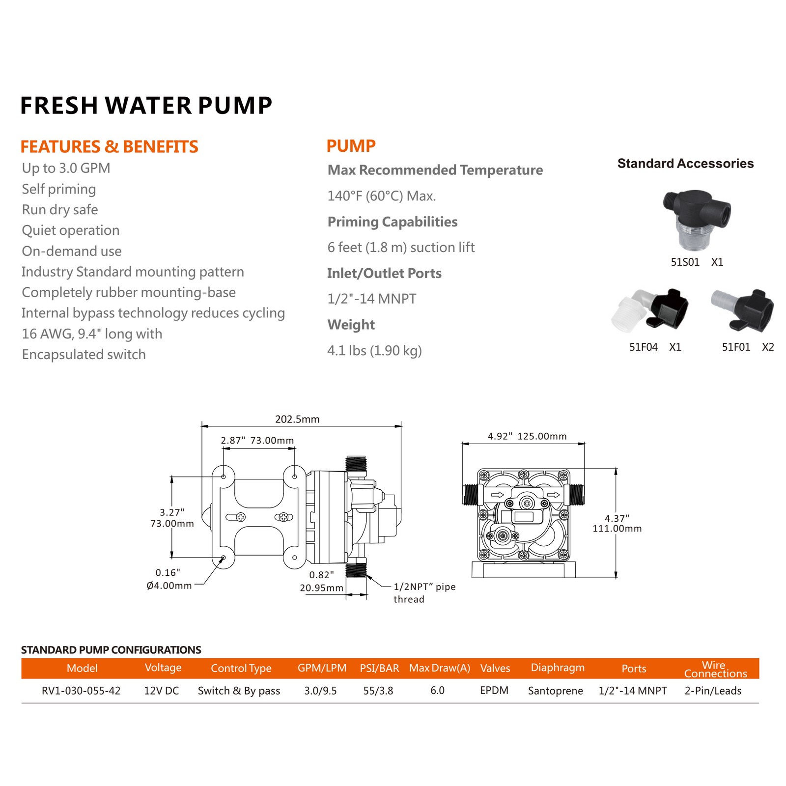 - Industry-standard mounting pattern (same as Shurflo for retro mounting)