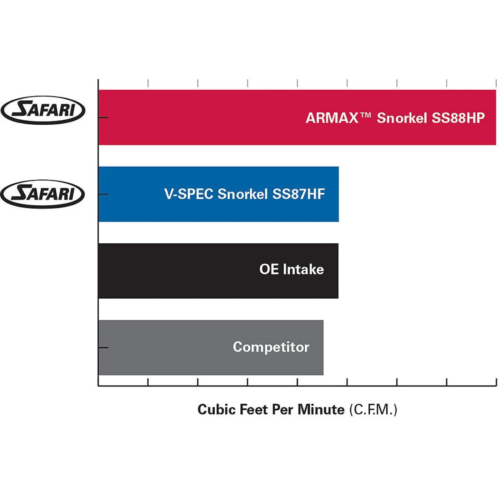 Utilising Safari‘s traditional design concepts and incorporating the very latest in scanning and CAD design software, Safari‘s V-SPEC Snorkels are ready to perform in the most extreme environments. Fully designed and manufactured in Australia, tested and verified on a custom flow bench to ensure the airflow meets or exceeds the factory inlet design. The Safari Snorkel offers the best air intake protection and performance for todays 4wd vehicles.
