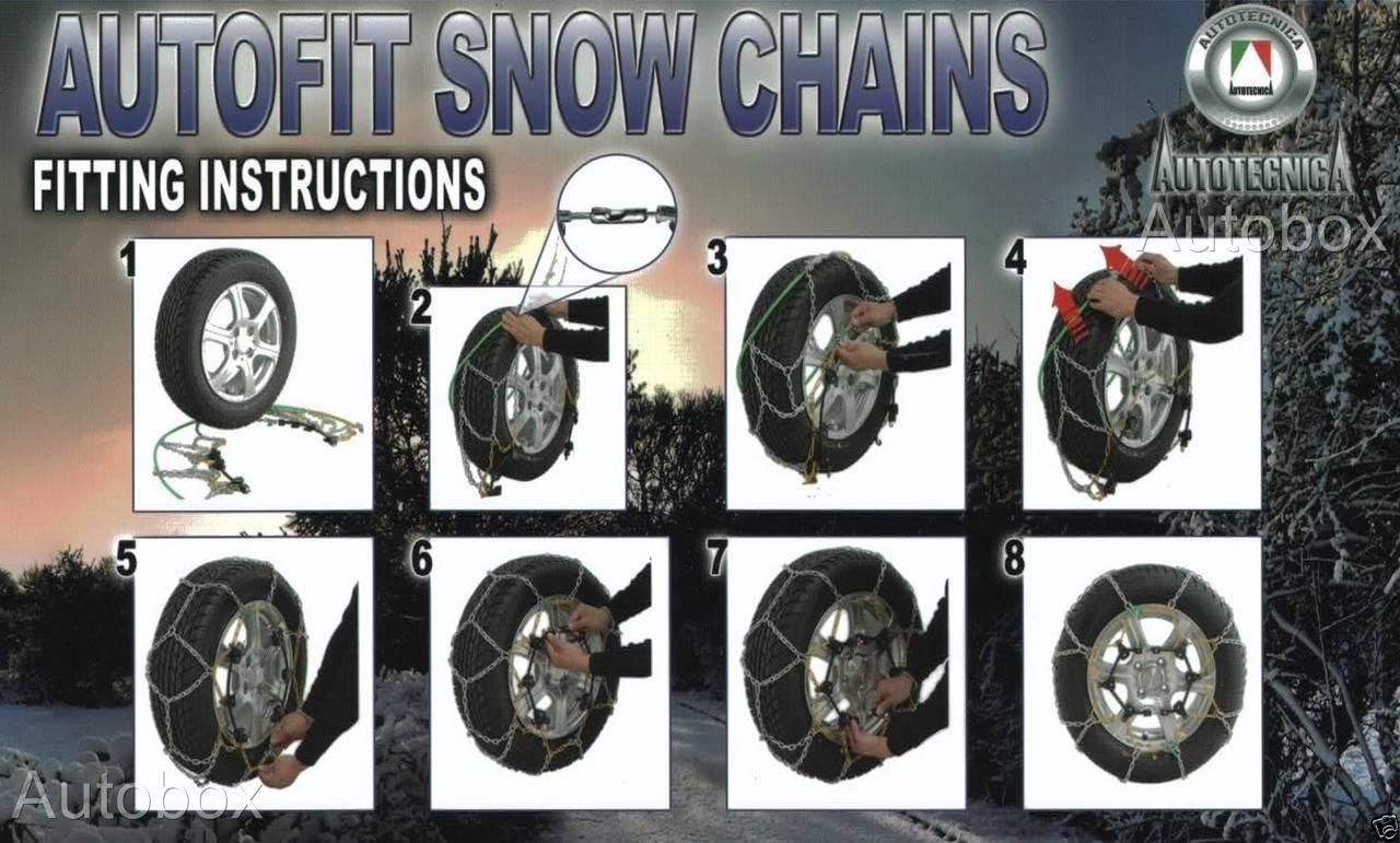 We recommend doing a trial fit at home prior to going to the snow to ensure the chains fit, and you know how to fit them. The chains are only to be used on the snow, and not driven bitumen.