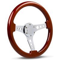 SAAS LOGANO SPORTS STEERING WHEEL 350MM WOODGRAIN CHROME SPOKES BUTTON ADR