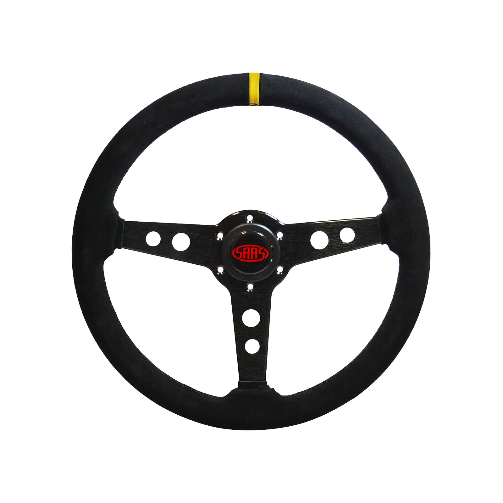 SAAS Soft Suede Retro Black Sports Steering Wheel Black Spokes 350mm Indicator