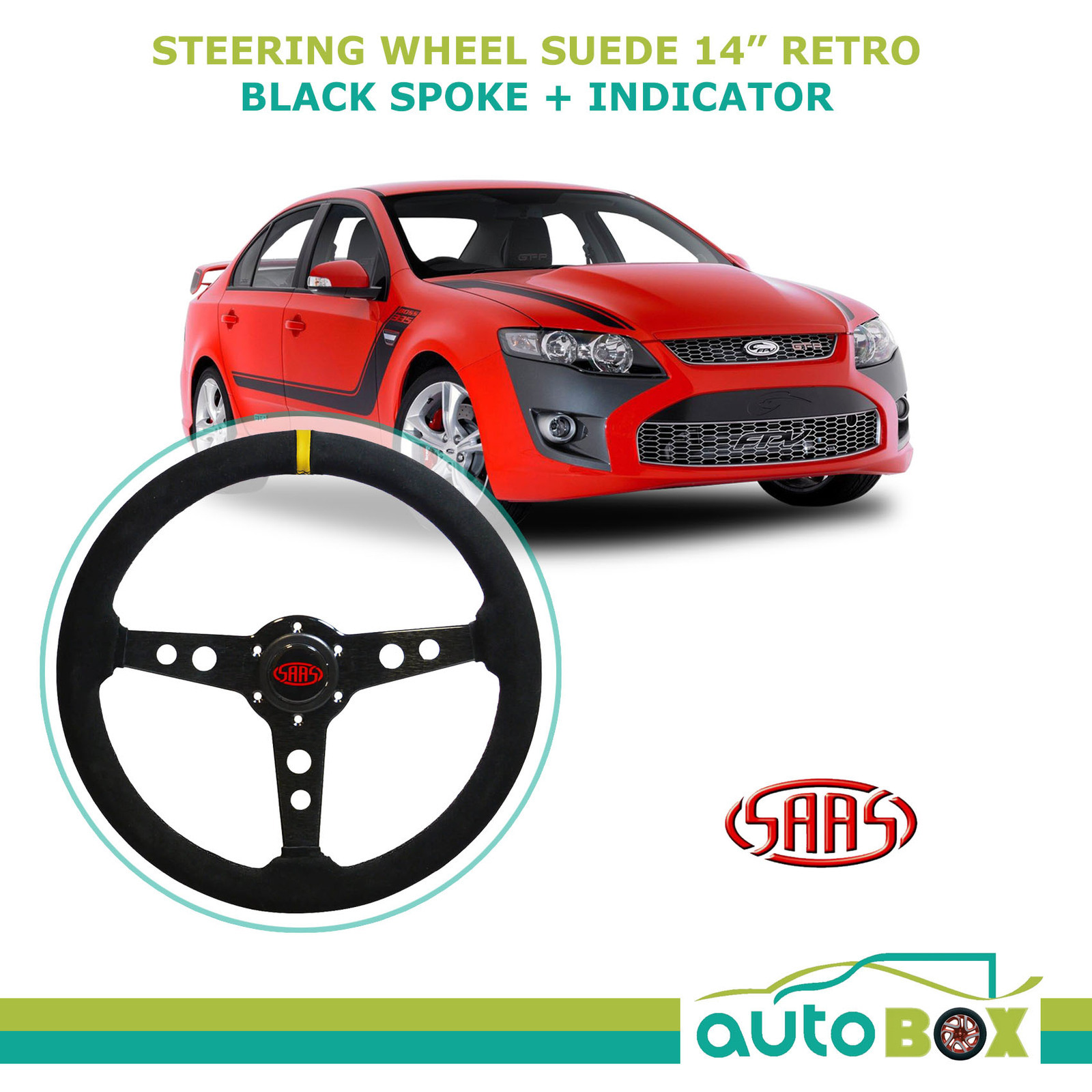 - 1x SAAS Steering Wheel Suede 14" Retro Black Spoke with Indicator
