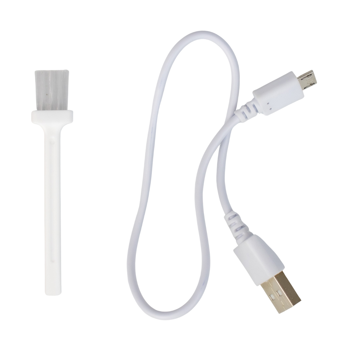 - Box includes: 1x zapper, 1x cleaning brush, 1x charging cord