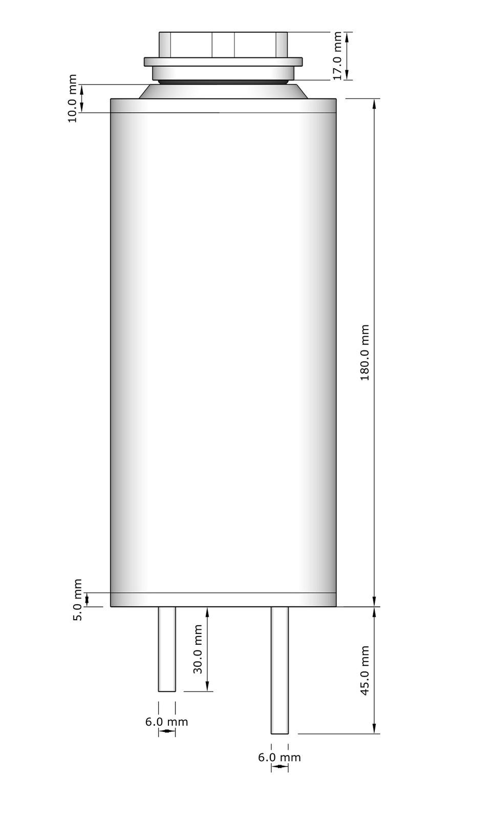 - 180mm high (plus cap and lower pipe)