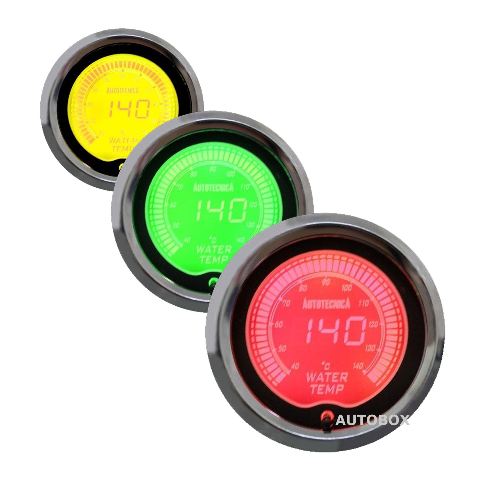 Autotecnica Electronic Water Temperature Temp LCD Digital Gauge 52mm 7 Colour